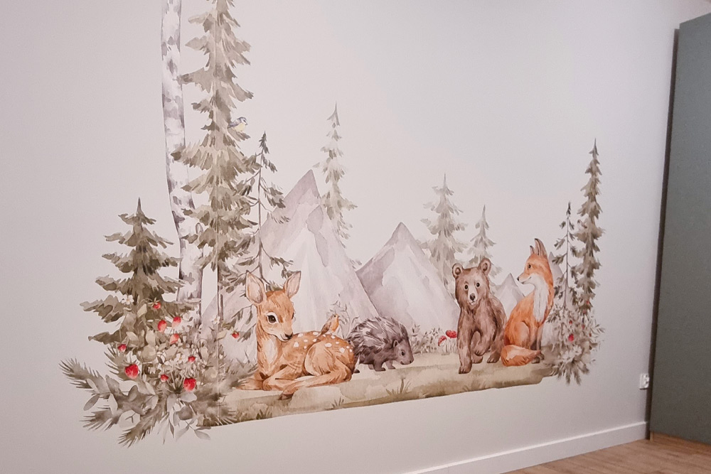 Precyzja druku UV, perfekcyjne odwzorowanie kolorów i efekt, który wygląda jak malowany ręcznie — bez folii, bez naklejek, prosto na ścianie.
